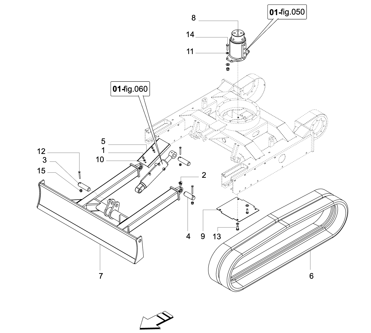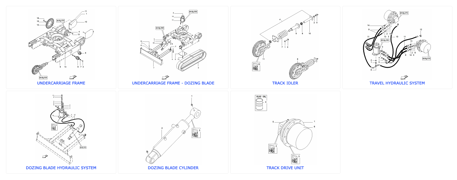 Undercarriage Frame Components: Undercarriage Frame - Dozing Blade / Track Idler / Travel Hydraulic System / Dozing Blade Hydraulic System / Dozing Blade Cylinder / Track Drive Unit